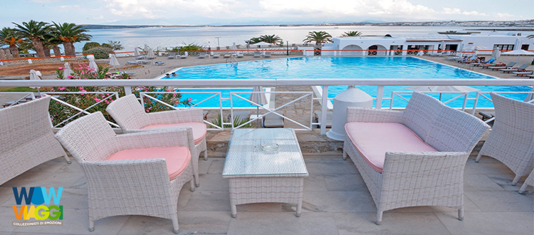 Situato nei pressi di Naoussa, il più iconico tra i villaggi dell’Isola di Paros, contraddistinto dai tipici vicoletti bianchi delle cicladi e una vivace e sofisticata vita notturna per la presenza di numerosi locali, lounge bar, taverne e negozi chic. L’Eden Village Porto Paros si presenta come la soluzione ideale per chi vuole coniugare il divertimento al relax e alla bellezza che solo le isole Cicladi sanno offrire. L'hotel offre ai propri ospiti un' ampia gamma di servizi come le 2 piscine o la bella spiaggia in cui potersi rilassare, 2 ristoranti in cui poter gustare specialità locali ed internazionali, 3 bar dove gustarsi cocktail rinfrescanti. Inoltre, per il divertimento di grandi e piccini, a disposizione il parco acquatico “Aqua Paros” (a pagamento) aperto da inizio luglio ad inizio settembre dotato di ampia piscina, di ben 13 scivoli d’acqua adatti a tutte le età. Porto Paros ha tutte le carte per farvi trascorrere una vacanza indimenticabile in una cornice unica. Recensioni Tripadvisor Eden Village Porto Paros.