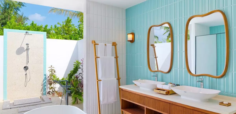 Beach Pool Villa – ampie 115 mq, con vasca, doccia e piscina privata.