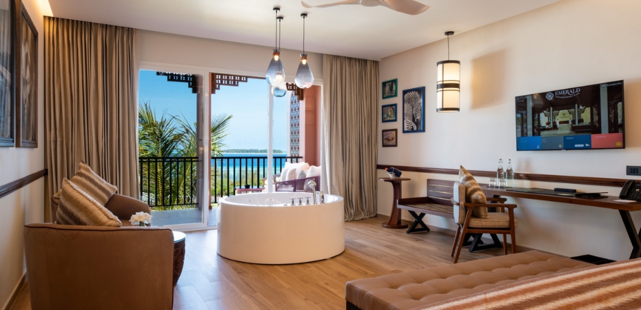 Camere 250 unità abitative in “suite” che creano un ambiente elegante, accogliente e rilassato con un mix di stile moderno ed esotico. Uniscono tocchi di classe e ricercatezza a dettagli che richiamano attenzione alla cura dell’ambiente. Si suddividono in Garden Junior Suite di 59 mq, meravigliosamente inserite in un paesaggio dove sono protagonisti alberi ad alto fusto e fiori tropicali, garantiscono privacy e tranquillità con fantastiche viste sulla verde vegetazione del Resort, e sono situate al piano terra o al primo piano; possono essere doppie, triple e quadruple con occupazione massima di 3 adulti e un bambino (in questo caso sistemazione prevista con letto aggiunto singolo e sofa bed). A seguire le Ocean Junior Suite, (occupazione come Garden) della stessa metratura e con la stessa disposizione piano terra o superiore, posizionate lato oceano con vista a distanza. Entrambe le tipologie offrono l’opportunità di camere comunicanti. Le più ampie Superior Junior Suite (74 mq) sono più orientate allo stile locale in mobili e accessori, accuratamente realizzate per abbinare gli autentici colori tradizionali africani a uno stile lussuoso. Si trovano al piano terra o al primo piano; alcune di esse dispongono di Jacuzzi (occupazione massima 4 adulti). Le Family Junior Suite di circa 70 mq, con due camere da letto e ambienti separati, sono l’ideale per i gruppi famigliari, infatti possono ospitare fino a 5 adulti. Completano il quadro le iconiche Pool Suite di oltre 260 mq con piscina privata e ampi spazi arredati in stile moderno, possono ospitare fino a 2 adulti e 3 bambini. Tutte le sistemazioni dispongono di balcone/patio, mini bar, bagno privato con vasca o doccia e bidet, cassetta di sicurezza, connessione wi-fi gratuita ad alta velocità, scrivania, televisore, ampi guardaroba, aria condizionata regolabile in camera e ventilatori a soffitto.