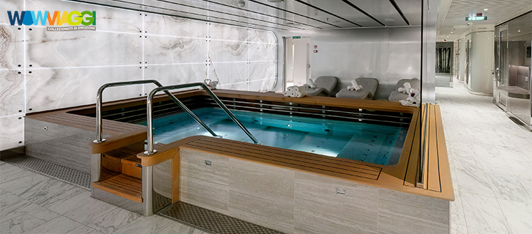 L'utilizzo delle attrezzature della nave: piscine, lettini, teli mare, palestra, vasche idromassaggio, biblioteca, discoteca.