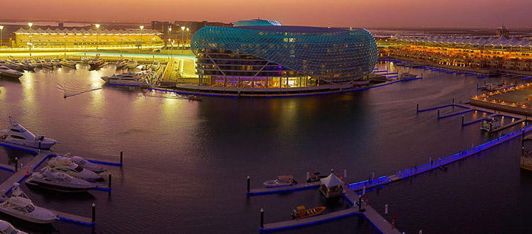Situato in parte sull'acqua e in parte sulla terra ferma, il Yas Viceroy si avvantaggia di una posizione invidiabile per l'affascinante vista sulla marina e per il fatto di essere stato costruito all'interno del circuito automobilistico di Yas Marina, che ospita dal 2009 il Gran Premio degli Emirati Arabi.