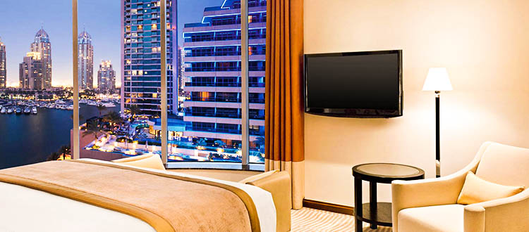 Sistemazioni - Cura dei particolari e qualità di un servizio personalizzato sono a disposizione di chi soggiorna in questa meravigliosa struttura. Le 305 tra camere e Suite dell'Hotel, così come i 221 appartamenti sono arredati in stile moderno, combinando un design cool di tendenza con l'atmosfera arabeggiante tipica del luogo.Tutte le camere godono di una vista panoramica sulla marina e dispongono di aria condizionata a controllo individuale, (alcune di un balcone privato), televisione LCD, lettore CD/DVD, minibar, telefono con linea esterna diretta e connessione Internet ad alta velocità.Gli appartamenti sono disponibili con due o tre stanze, per una superficie che varia dai 180 ai 240 mq.Disponibile un servizio di maggiordomo 24 ore su 24 sia per i clienti degli appartamenti sia, su richiesta, per chi soggiorna nell'hotel.