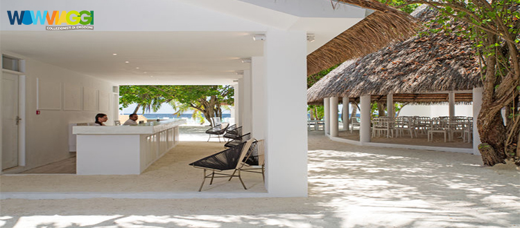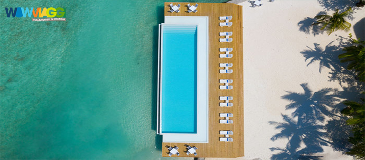 Spiagge e piscine L’hotel si sviluppa su una piccola isola corallina di 300 per 150 metri, immerso fra palme e vegetazione tropicale, circondato da una magnifica spiaggia. Due comodi pontili consentono di accedere agevolmente al mare aperto oltre il reef. È inoltre disponibile una piscina a sfioro con una magnifica vista panoramica. Lettini e teli mare a disposizione dei clienti.