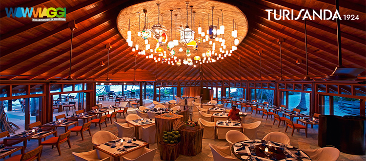 Con gusto La struttura propone 4 ristoranti. Il ristorante principale si chiama Jahaz e propone una cucina internazionale con servizio a buffet ; il Jing offre una cucina fusion che esalta il gusto della perfetta combinazione tra cuina europea ed asiatica. Posto al di sopra della laguna, si affaccia sull'oceano garantendo panorami unici per occasioni speciali.; il Meeru Beach Grill è un ristorante chic dov'è possibilie gustare, a piedi nudi nella sabbia, piatti alla griglia di carne e pesce semplici molto gustosi; infine, il Kaika Sushi Bar è aperto tutti i giorni solo a pranzo e propone una varietà di sushi, sashimi, maki, e piatti tradizionali della cucina giapponese.