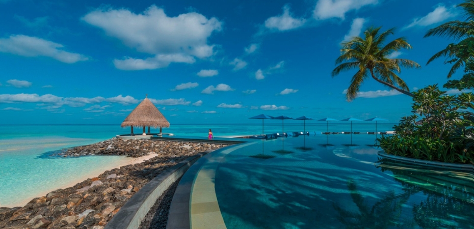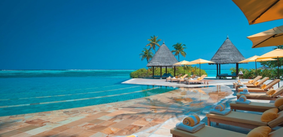 La piscina di acqua dolce, tra le più ampie delle Maldive (lunghezza 25 metri, profondità 1,4 metri) si fonde perfettamente con il mare e con l’infinito. Circondata da una grande terrazza solarium, dispone di comode chaise lounge su cui rilassarsi totalmente. Vengono forniti teli bagno; nell’area è presente un bar con servizio a bordo piscina.