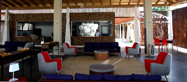 Camere 63 unità suddivise in camere standard, bungalow e suite fronte mare. Tutte le camere, arredate con cura ed eleganza, sono dotate di servizi privati con doccia, asciugacapelli, aria condizionata, Tv, cassetta di sicurezza e frigobar con 2 bottigliette di acqua all’arrivo; minibar a pagamento. Le 48 camere standard si trovano nel corpo centrale su 3 piani e sono dotate di terrazza (piano terra) o balconi (primo e secondo piano). I bungalow divisi in 3 strutture separate ospitano un totale di 12 camere (delle quali 9 vista giardino e 3 vista mare), ognuna delle quali dotate di idromassaggio in veranda. Le 3 suite fronte mare rappresentano le sistemazioni più esclusive del resort: posizionate ad un passo dalla spiaggia, sono caratterizzate da maggior comfort e metratura (2 camere da letto) e sono anch’esse dotate di idromassaggio in veranda. Corrente elettrica a 220 volt con prese di tipo francese