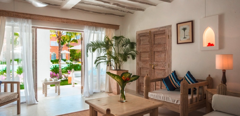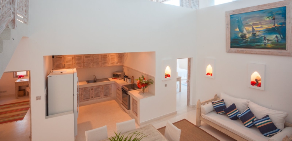 Camere Dotato di 40 suite di diverse tipologie, arredate con gusto e ispirate ad un concept moderno e dal tocco africano, partono da un minimo di 100 mq fino a 500 mq. Le medina suite 1 bedroom sono composte da 1 camera (massima occupazione 2 adulti), le medina suite 2 bedroom sono composte da 2 camere (massima occupazione 4 adulti o 2 adulti e 2 bambini), cucina a vista e veranda che si apre sui giardini e sulle piscine. Le medina penthouse sono attici che dispongono di un cortile interno, 2 camere (massima occupazione 4 adulti), zona soggiorno con cucina a vista e terrazza sul tetto con idromassaggio privato. Le palmerie beach villa dispongono di 3 ampie camere (massima occupazione 6 adulti), zona soggiorno con cucina a vista e terrazza sul tetto con idromassaggio privato. Altre tipologie su richiesta.