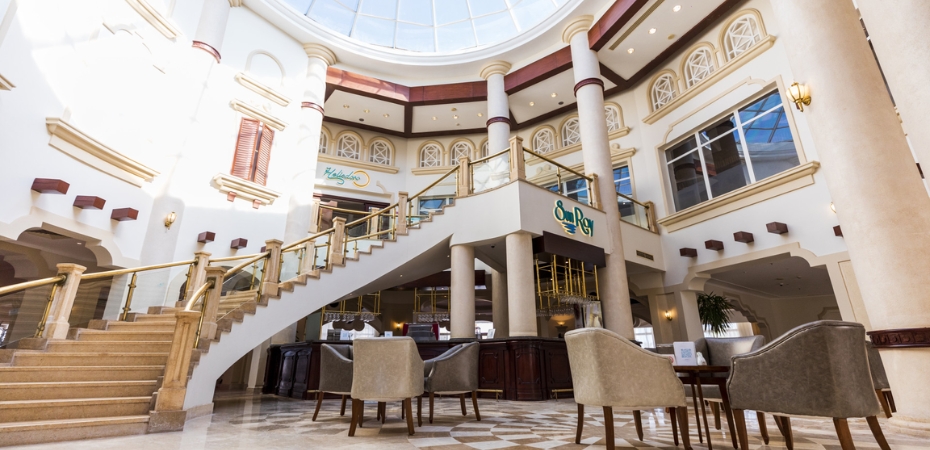 Sport e non solo Ristorante principale con specialità internazionali e con servizio a buffet, 5 ristoranti à la carte a disposizione dei clienti su prenotazione (mediterraneo, egiziano, messicano, indiano e di pesce che è l’unico a pagamento), lobby bar, snack bar, bar in piscina, due bar in spiaggia di cui uno solo per adulti e bar presso l’anfiteatro per gli spettacoli di animazione, sala TV, area giochi per bambini, sala giochi e parcheggio. 2 piscine esterne di cui una per bambini con un piccolo acqua park ed entrambe riscaldate durante il periodo invernale, anfiteatro per gli spettacoli di animazione, campo da tennis, ping pong, biliardo e palestra presso il centro benessere, calcetto.