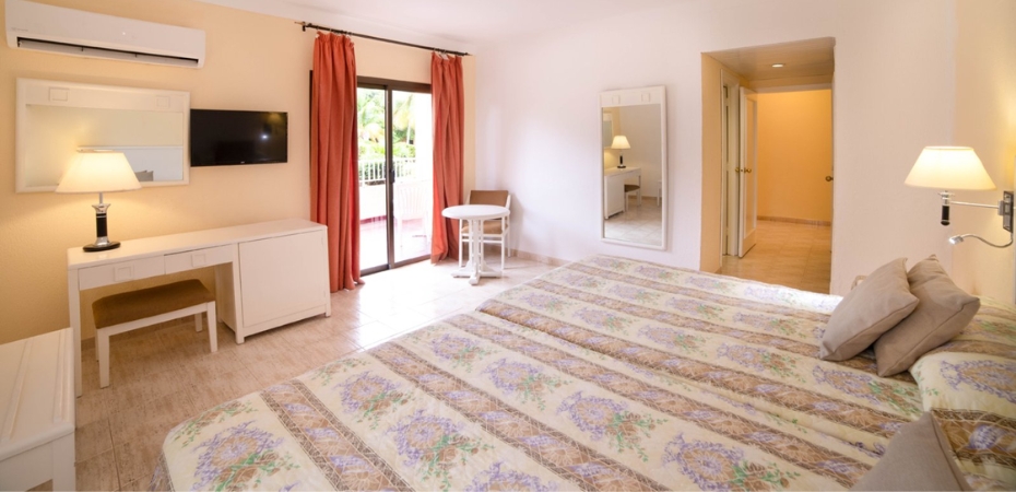 Camere 316 camere dislocate in villette circondate da giardini, si suddividono in standard superior, suite con 2 ambienti e roc suite. Sono tutte dotate di 1 letto king size o 2 letti queen size, aria condizionata, TV satellitare, Wi-Fi, telefono, minifrigo, asse e ferro da stiro, asciugacapelli, terrazza o balcone. A pagamento: cassetta di sicurezza. Possono ospitare fino a 3 adulti e 1 bambino. Le roc suite, inoltre, prevedono servizi personalizzati come: rifornimento giornaliero minifrigo con 1 bottiglia d’acqua, 1 bottiglia di rum anejo in camera all’arrivo, colazione VIP presso il ristorante La Dolce Vita, tavolo riservato presso il ristorante a buffet con servizio bevande, late check-out fino alle ore 14.