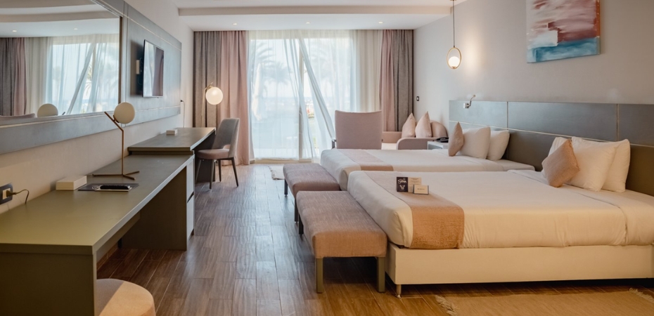 Camere 481 camere suddivise in diversi edifici: premium vista piscina e premium vista mare (max 2 adulti e 2 bambini o 3 adulti); family room vista piscina e family room swim up (max 3 adulti e 1 bambino); premium jacuzzi vista mare, riservate alla clientela adulta (max 3 adulti); signature suite vista mare (max 4 adulti e 2 bambini). Moderne, eleganti e luminose, sono tutte dotate di aria condizionata, cassetta di sicurezza, asciugacapelli, telefono, TV, Wi-Fi a velocità limitata (alta velocità disponibile a pagamento) bollitore per la preparazione di tè e caffè, ferro e asse da stiro (su richiesta), balcone o terrazzo. A pagamento: servizio in camera e consumazioni minibar.