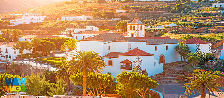 Fuerteventura è un’isola particolarmente indicata per chi vuole dare un taglio netto al trambusto e alla frenesia della vita moderna e dedicarsi solamente a bagni di sole abbracciati dalle acque azzurre e rinfrescanti dell’Oceano Atlantico. Il clima di Fuerteventura, complice la vicinanza con la costa africana e il vento caldo che la raggiunge, è mite tutto l’anno. L’alternarsi di grandi dune e roccia a lunghe spiagge sabbiose, caratterizzano quest’antica isola di origine vulcanica che è la meta ideale per gli amanti della natura e per coloro che ne vorranno scoprire i caratteristici villaggi di pescatori. Le località più conosciute sono Corralejo, centro turistico più sviluppato e animato dell’isola, con la sua distesa di dune di sabbia sahariana bianca e finissima trasportata nel corso dei decenni dal vento caldo del deserto; El Cotillo, al nord-ovest di Fuerteventura, un piccolo e tranquillo villaggio di pescatori che tutt’oggi riesce a mantenere il proprio aspetto “tradizionale”, famoso per le sue spiagge bianchissime, selvagge e per lunghi tratti ancora incontaminate; Jandia, all’estremo sud dell’isola, una delle zone più belle di Fuerteventura, con la sua lunghissima spiaggia di sabbia bianca e i paesaggi incantevoli. Fuerteventura non è soltanto sole e mare. Gli amanti della natura e gli appassionati d’immersioni e di windsurf, così come gli appassionati delle tradizioni e della cultura locale, avranno tantissime opportunità e possibilità in quest’isola che, più tra le altre dell’arcipelago canario, conserva il fascino di una natura selvaggia e incontaminata