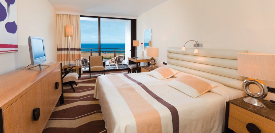 Camere 328 camere che possono ospitare fino a 2 adulti e 1 bambino, suddivise in doppie standard (tra il 2° e il 3° piano, con vista limitata sull'ingresso dell'hotel), doppie superior (tra il 2° e il 5° piano con vista piscina o giardino o mare) e doppie deluxe (tra il 5° e il 7° piano, con una vista spettacolare sul giardino, sulla piscina o sul mare e che offrono maggiore comfort e amenities VIP). Sono tutte dotate di servizi privati, asciugacapelli, aria condizionata, cassetta di sicurezza, telefono, TV satellitare, connessione Wi-Fi, accappatoio e ciabattine, specchio da make-up, bollitore, acqua e frutta in camera all'arrivo. A pagamento: consumazioni minibar. Dispone inoltre di junior suite con camera da letto e soggiorno che possono ospitare fino a 3 adulti.