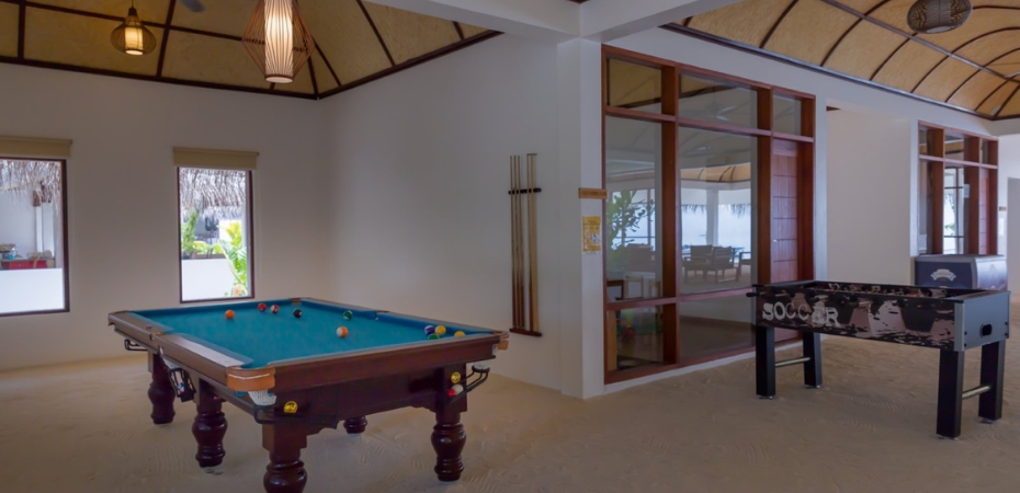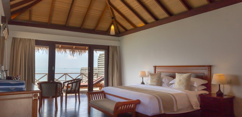 Camere 40 camere (49 m², max 3 adulti), tutte sulla spiaggia, dotate di servizi privati con doccia maldiviana, aria condizionata, asciugacapelli, balcone con lettini, cassetta di sicurezza, telefono, connessione wi-fi gratuita, tv satellitare, bollitore. A pagamento, minibar. Disponibili con supplemento water villa (53 m²), water villa con idromassaggio e water villa con idromassaggio piscina (63 m²). Tutte le water villa hanno bagno non maldiviano e sono dotate di amaca sospesa sull’acqua.