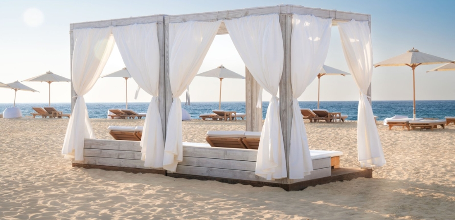 Spiagge e piscine Sorge direttamente su una meravigliosa ed ampia spiaggia bianca di sabbia fine con accesso diretto e digradante al mare. A disposizione degli ospiti 6 piscine, di cui una con acqua di mare, una riscaldata, una piscina a onde per il divertimento di grandi e piccini e una piscina riservata ai clienti prenotati in villa. Lettini, ombrelloni e teli mare disponibili in piscina e in spiaggia.