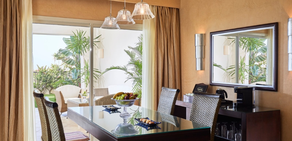 Camere 263 camere, suddivise in superior vista piscina, superior vista mare laterale, family room vista giardino, family room vista piscina e family room vista mare laterale. Tutte le sistemazioni sono eleganti, con aria condizionata individuale, telefono, TV satellitare, cassetta di sicurezza, asciugacapelli, set per la preparazione di tè e caffè all’americana e balcone o terrazza. Su richiesta, camere superior comunicanti, junior suite o executive suite con vasca idromassaggio e royal suite con vasca idromassaggio, giardino e piscina privati.