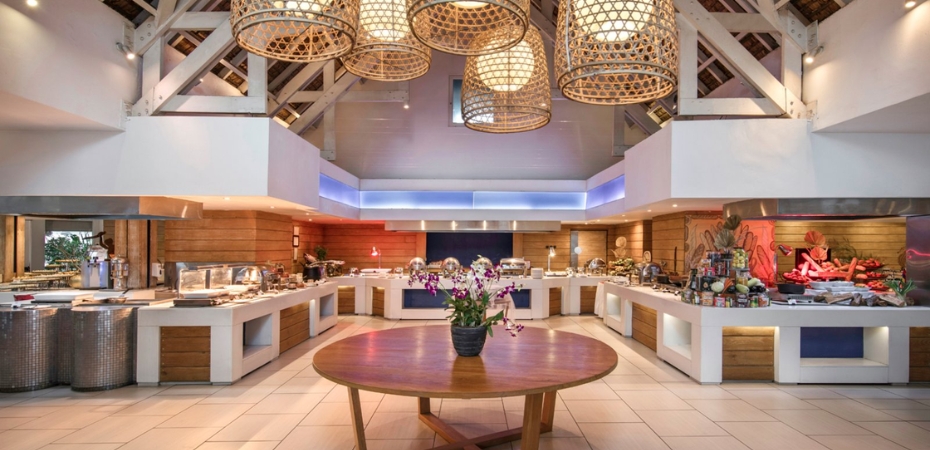 Con gusto 3 ristoranti di cui 1 principale a buffet, Indigo, 1 à la carte con cucina italiana disponibile a pranzo e cena, Dolce Vita e, a pagamento, 1 ristorante sulla spiaggia con specialità mediterranee e mauriziane, La Plage. 4 bar tra cui 1 specializzato in creative cocktails, Ti bar, 1 sport bar, H&H Lounge, e il night club Shakers con intrattenimento serale diverse volte a settimana. Disponibile servizio in spiaggia e in piscina con menù dedicato.