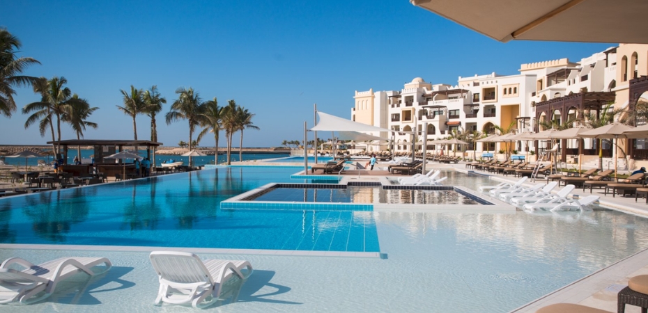 Spiagge e piscine Accesso diretto all’ampia spiaggia di sabbia attrezzata con ombrelloni, lettini e teli mare gratuiti, due piscine di cui una per bambini e una a sfioro di 800 m² riscaldata durante i mesi invernali con vista sulla spiaggia, attrezzate con ombrelloni, lettini e teli mare gratuiti, idromassaggio, tutti i clienti hanno accesso anche alla spiaggia del Salalah Rotana.