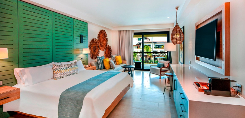 Camere 1.042. Dispongono di aria condizionata, connessione Wi-Fi, minibar, TV satellitare, cassetta di sicurezza, asse e ferro da stiro, balcone. Le junior suite swim up si trovano al piano terra e hanno accesso diretto alla piscina. Tutte le camere hanno occupazione massima di 2 adulti e 2 bambini o 3 adulti, le camere nella zona adulti di 3 adulti.