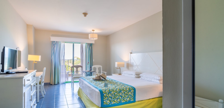 Camere Dispone di 272 camere, distribuite in un edificio principale ed in 17 bungalow a due piani. Tutte le camere sono dotate di 1 letto king size o 2 letti queen size, aria condizionata, Wi-Fi, asciugacapelli, TV satellitare, telefono, minibar (1 bottiglia d’acqua inclusa), cassetta di sicurezza (a pagamento), asse e ferro da stiro, balcone o terrazza. L’occupazione massima è di 2 adulti e 2 bambini o 3 adulti in tutte le tipologie di camera.