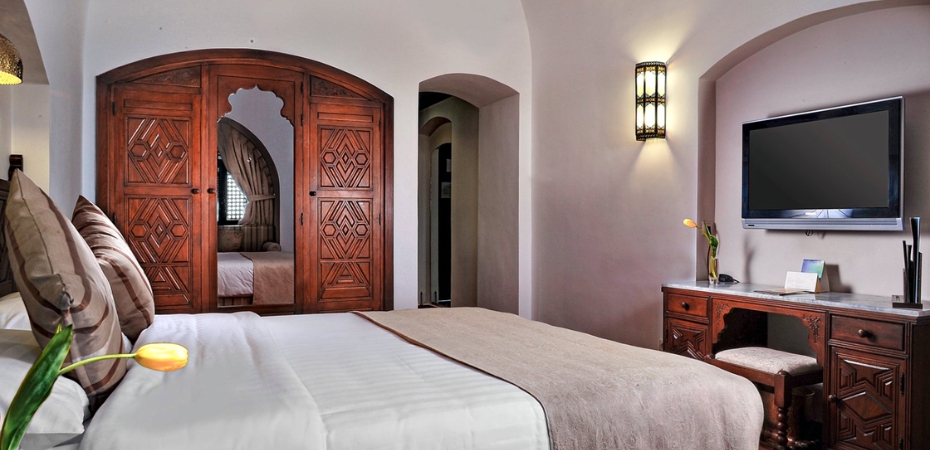 Camere 302 camere arredate con dettagli in stile arabesco, tutte affacciate sul mare con asciugacapelli, climatizzazione regolabile, cassetta di sicurezza, TV satellitare con ricezione di programmi italiani e balcone. Una nicchia con divano in muratura (di 170 cm di lunghezza) è utilizzabile come terzo letto per bambini. Si suddividono in doppia vista mare laterale, doppia vista piscina/mare, doppia panoramica vista mare, deluxe piano terra e possono ospitare tutte fino a 2 adulti e 1 bambino. A pagamento: consumazioni minibar.