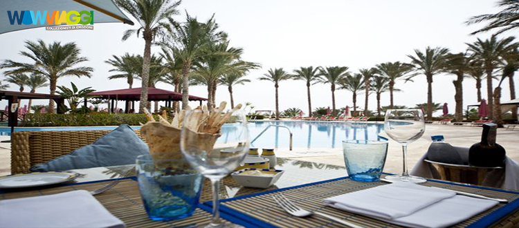 Con gusto Ristorante principale a buffet, il Ramses, e 3 a la carte: The Palms Bar & Grill, fronte spiaggia, con barbecue e frutti di mare; Mezzaluna Italian Restaurant, a bordo piscina e dall’atmosfera di una tipica trattoria italiana; Silk Road, di cucina orientale (aperto solo per cena; per ragioni operative, in alcuni periodi dell'anno potrebbe non essere operativo). 5 bar: Aquarius pool Bar, Palms Bar in spiaggia, Sky Lounge, dove poter fumare la shisha; Isis Lobby Bar, con grande varietà di bevande e sigari; C Lido Bar (non incluso nella formula all inclusive), con ricco menu di crepes e di shisha; 1 pub (non incluso nella formula all inclusive), Duke's English Pub, tipico pub in stile inglese con schermi TV dove vengono trasmessi eventi sportivi e dove poter gustare meze orientali e snack fino a tarda notte.