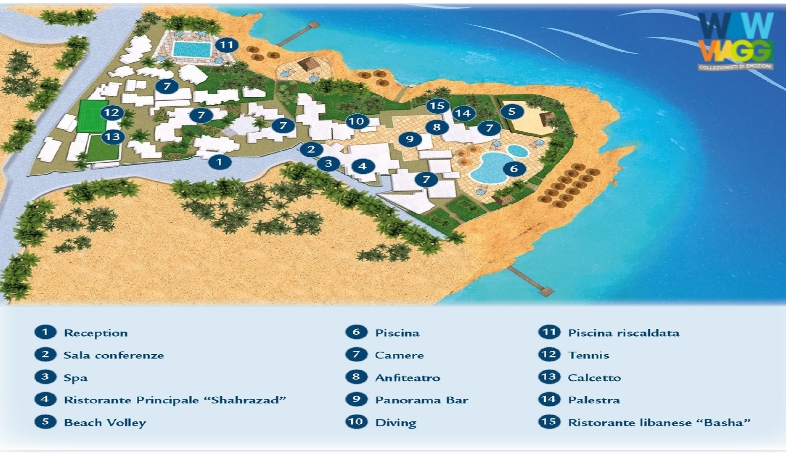 Programma di escursioni facoltative a pagamento, tra le quali indichiamo: Glass Boat, City Tour, Luxor, Il Cairo, Delfinario, Moto nel Deserto, Parco marino di Ras Mohammed, Sottomarino, Blue Hole.
