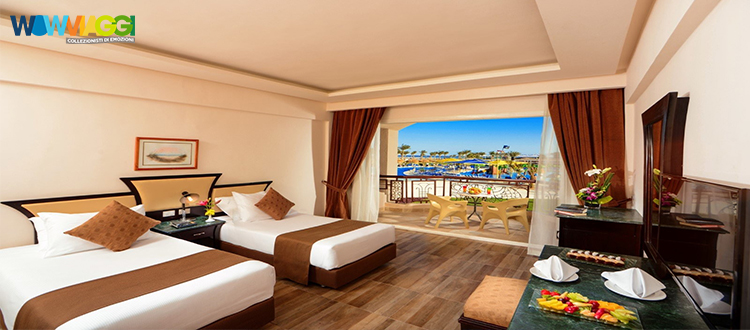 Camere 638 camere (circa 35m²), distribuite su 3 piani, con servizi privati, asciugacapelli, aria condizionata, telefono, tv satellitare con alcuni canali italiani, minibar (2 bottiglie di acqua gratuite, altre consumazioni a pagamento), cassetta di sicurezza, connessione wi-fi gratuita e balcone o veranda. Sono disponibili con supplemento camera vista piscina o vista mare.