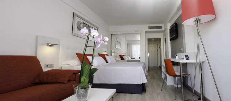 Camere 308 unità suddivise in camere Standard e Club Alexandre: doppie (letti separati), triple (2 letti e poltrona letto) e quadruple (letto matrimoniale più 2 letti singoli). Le camere Standard, tutte ristrutturate nell’estate del 2022, dispongono di servizi privati con vasca, asciugacapelli, telefono, aria condizionata, Tv, frigobar, balcone; cassetta di sicurezza a pagamento. Corrente elettrica: 220 volt con prese a due poli. Welcome gift in camera: 1 bottiglia di vino spagnolo, 2 bottiglie di acqua minerale, 2 lattine di coca-cola o aranciata, snack (patatine o salatini).