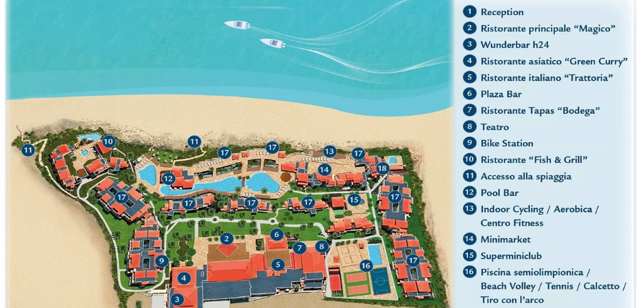 Camere Il resort dispone di 213 camere ampie e confortevoli, suddivise in varie tipologie: Standard, Vista Mare, Family Room. Le camere sono arredate in stile moderno e funzionale, pensate per offrire un soggiorno rilassante e dotate di: