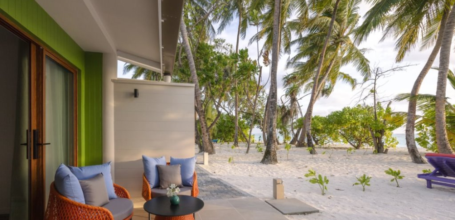 Accessibile direttamente dalla maggior parte delle ville e bungalow, la spiaggia è attrezzata con lettini, ombrelloni, teli mare e punti d'ombra naturali creati dalle palme. Qui potrai rilassarti al sole o goderti un tramonto maldiviano sorseggiando un cocktail tropicale con i piedi nella sabbia.
